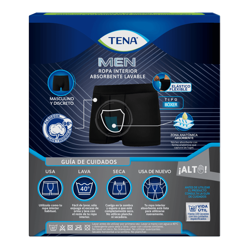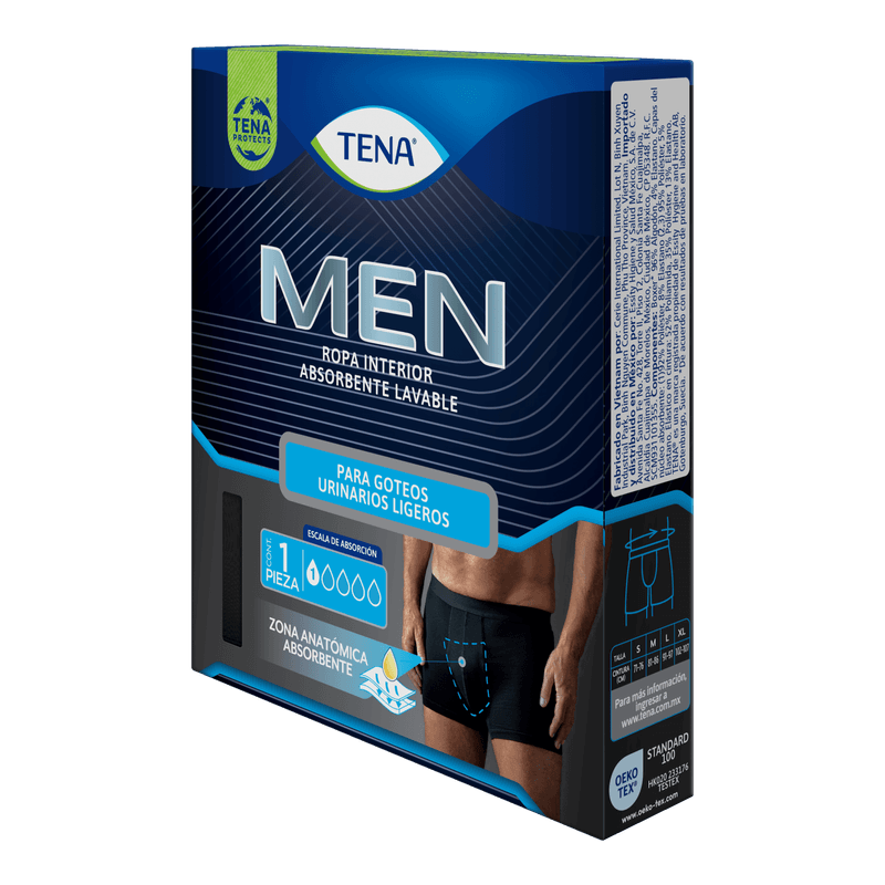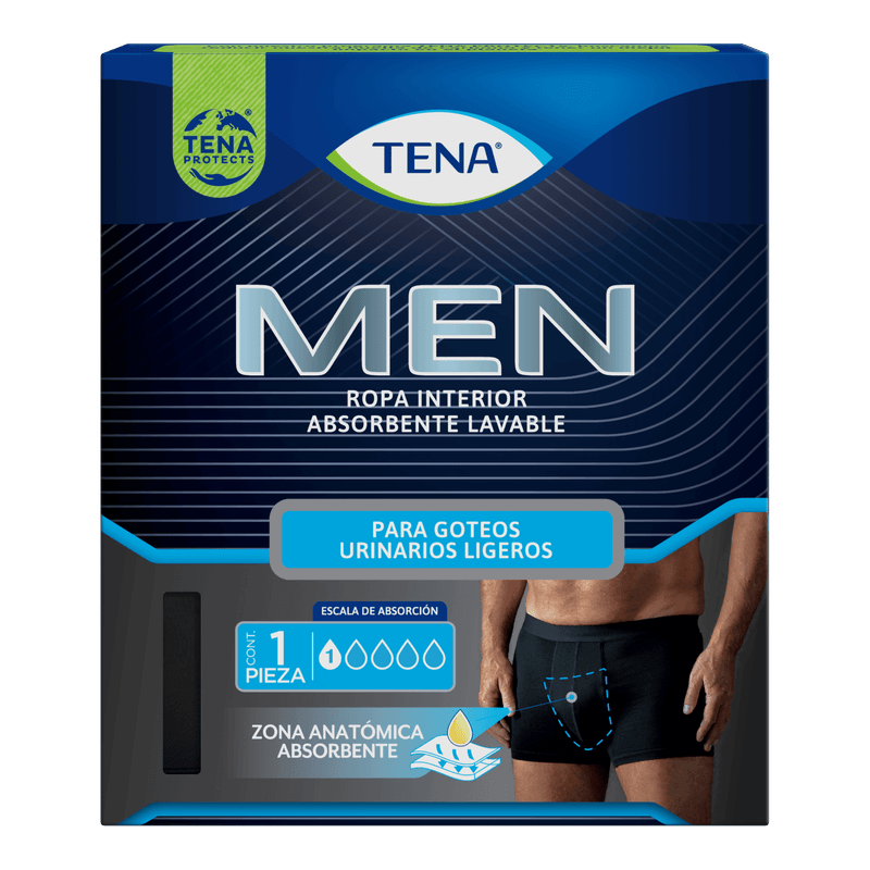 Con TENA Ropa Interior Lavable para Hombre, disfruta de la comodidad y discreción de una prenda reutilizable que se ve y se siente como ropa interior común, diseñada para absorber goteos esporádicos y mantenerte seguro durante todo el día.
