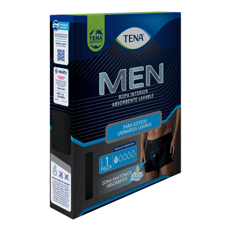 Con TENA Ropa Interior Lavable para Hombre, disfruta de la comodidad y discreción de una prenda reutilizable que se ve y se siente como ropa interior común, diseñada para absorber goteos esporádicos y mantenerte seguro durante todo el día.