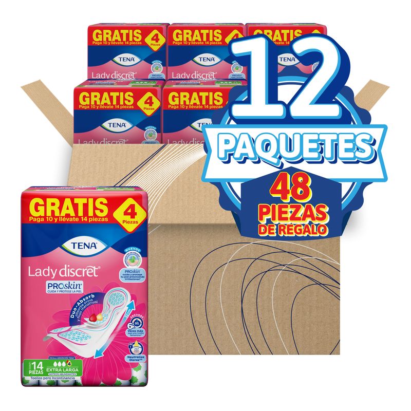 TENA Toallas Lady Discret Extra Larga 12 paquetes de 14 piezas